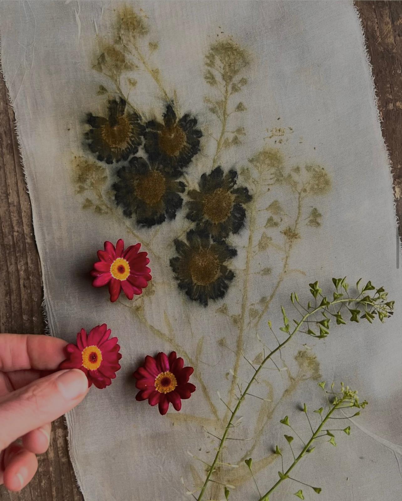 We have chosen to buy natural waste fabrics from large companies and choose to do so because it allows us to save material destined for incineration or landfill, giving them a new life with our natural dyes and prints,Thus saving valuable energy and reducing the heavy carbon footprint.