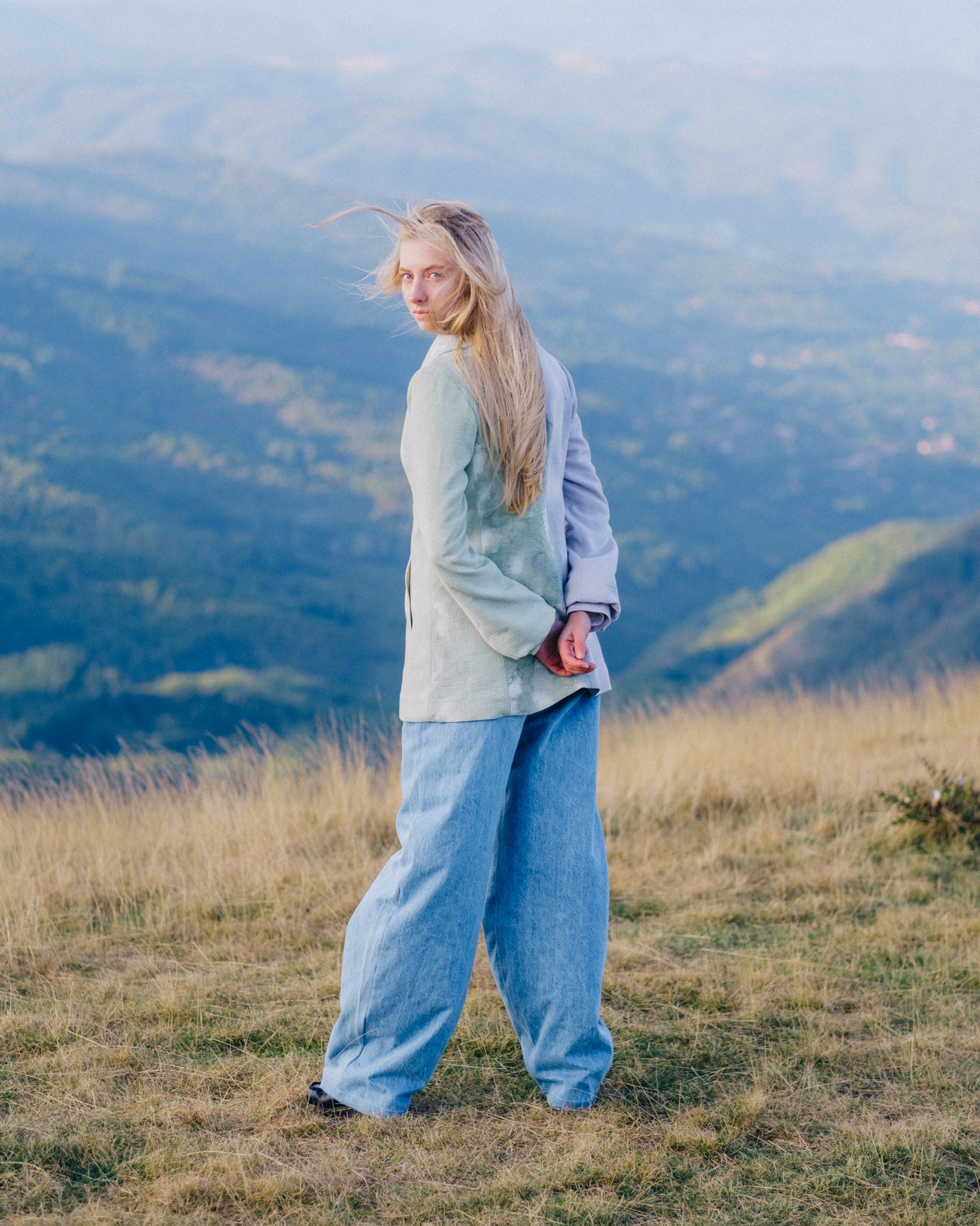 Il Blazer Nefti è un'opera d'arte di eleganza naturale e sostenibile. Ogni dettaglio di questo blazer è stato creato con amore in Italia, utilizzando un mix di colori naturali derivati dalla clorofilla e dal mais nero, conferendo al capo una bellezza unica. La sua lana deadstock di alta qualità, insieme alle tasche nascoste sul davanti e ai morbidi polsini, lo rendono un capo versatile e alla moda.