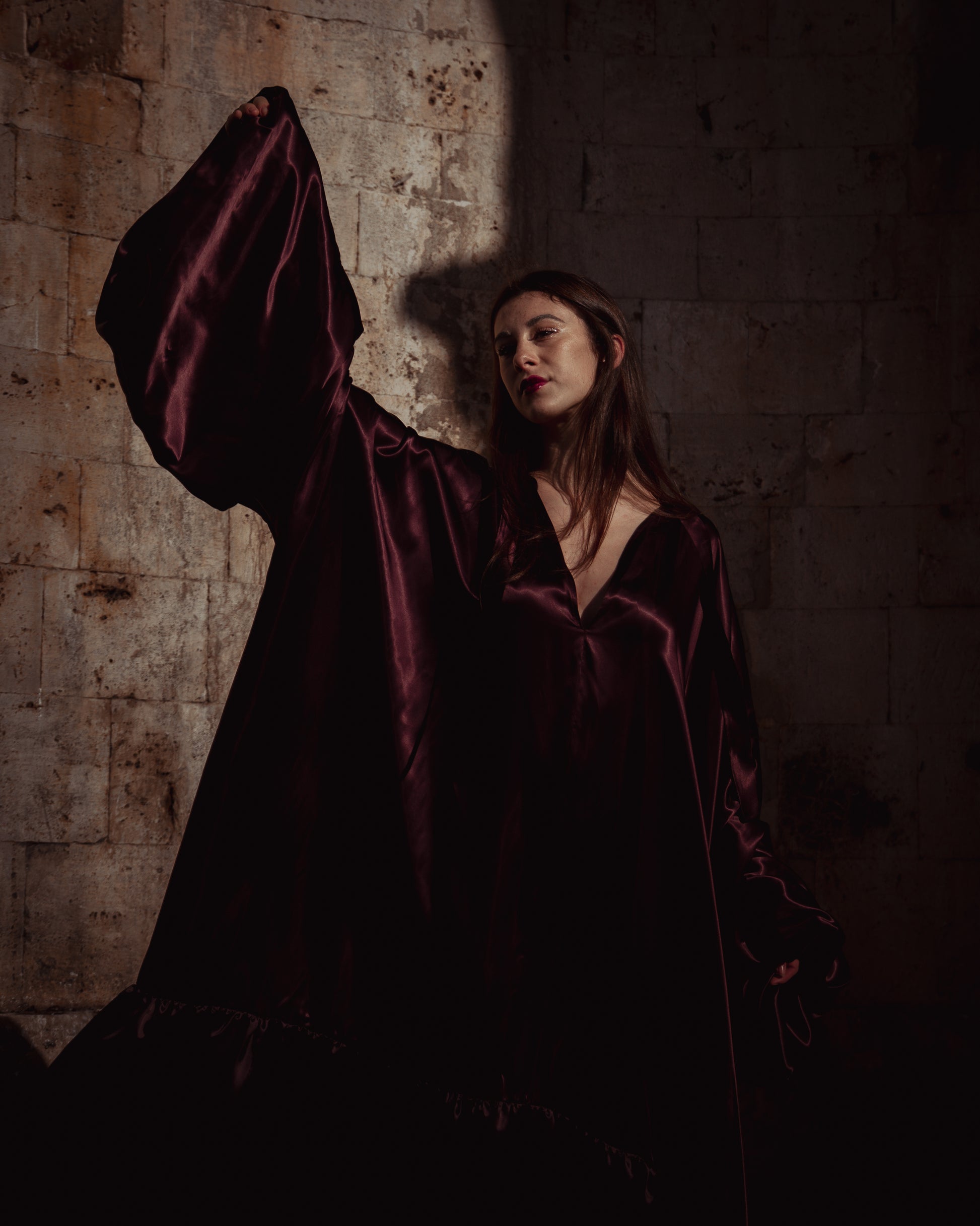 Ogni capo Aethernal è creato con tinture completamente naturali; per preservare al meglio le sue qualità, si consiglia di lavare l'abito a mano con sapone neutro, evitando l'esposizione diretta alla luce solare. Stirare a massimo 100° per mantenere la delicatezza del tessuto.
